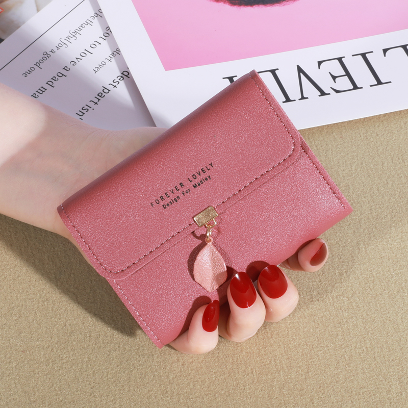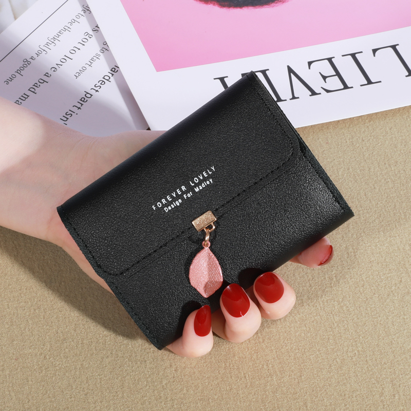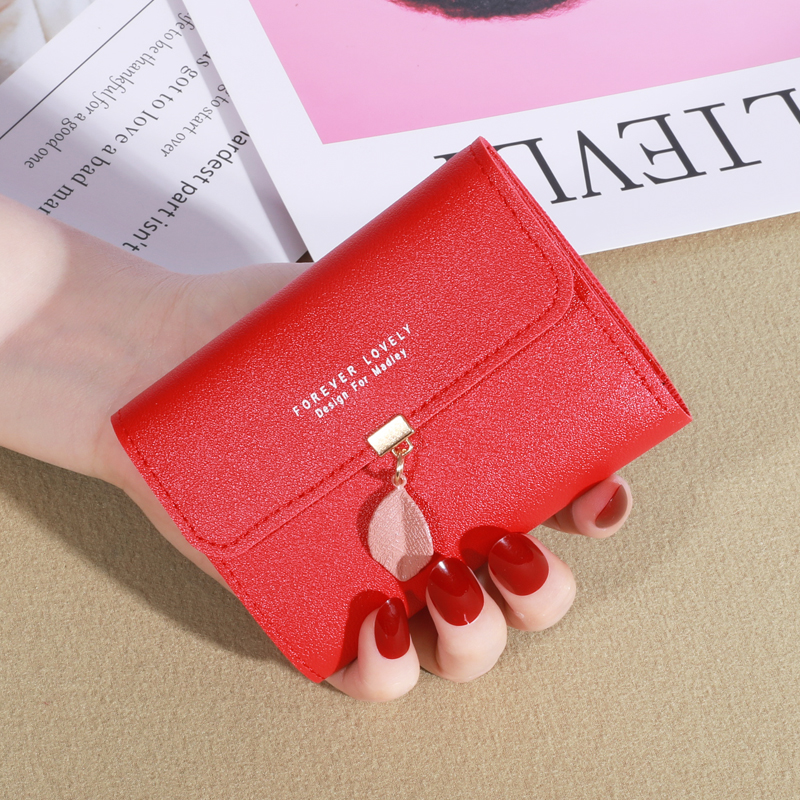 2023 New Style Fashion Small Wallet Women Short Style Korean Version Simple Small Fresh Leaves 70% off Buckle Coin Purse Card Holder Ladies Bag