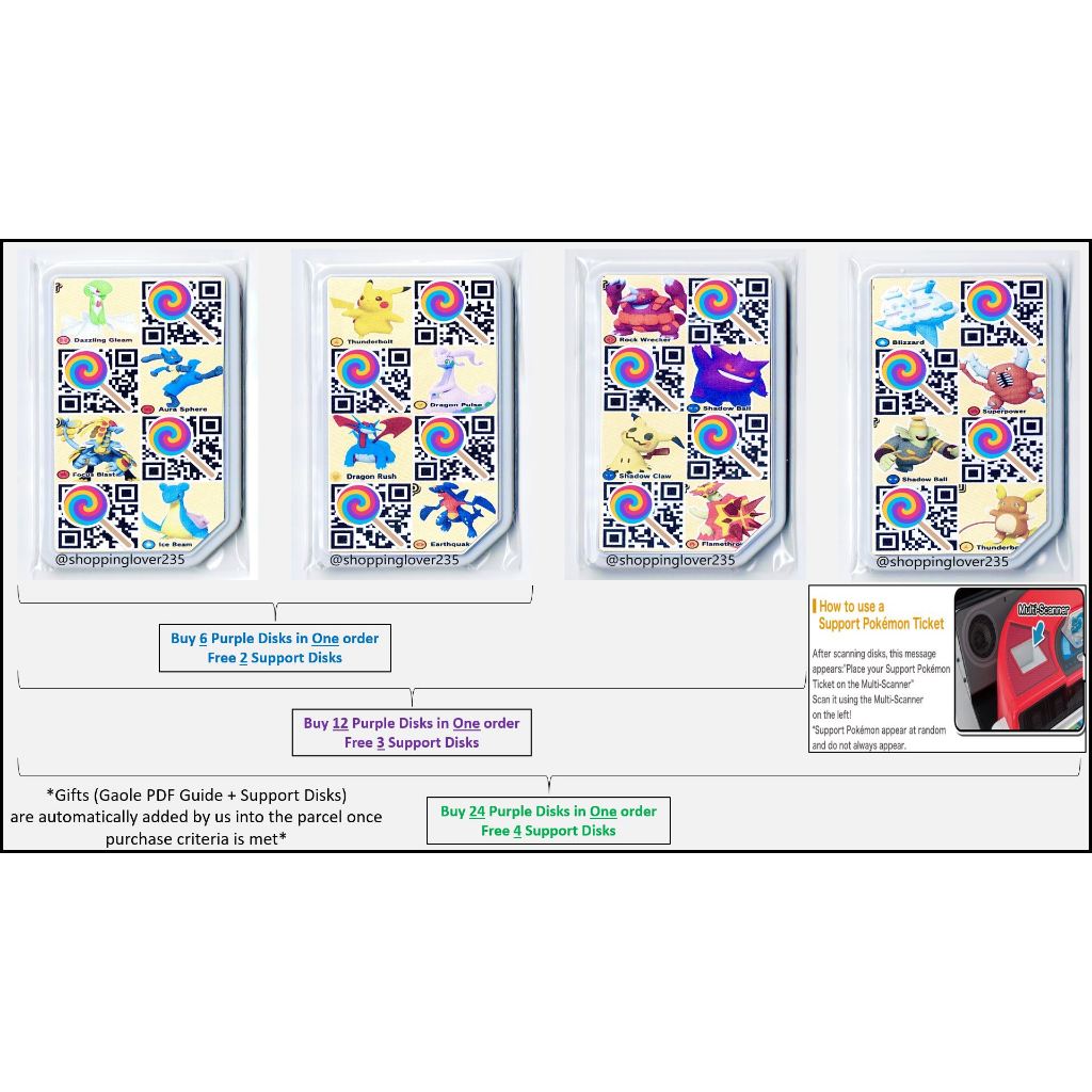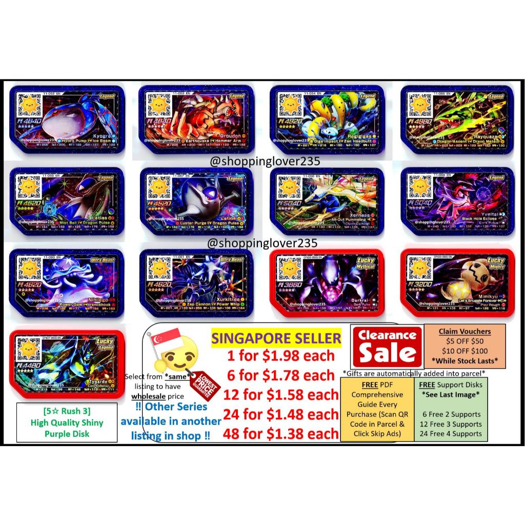 (5☆ Part 4 ~ Rush 4) Pokemon Gaole Purple Disk Scannable in Singapore & Malaysia # Ga-Ole Ga-Olé Gaole Gaolé Ga Ole