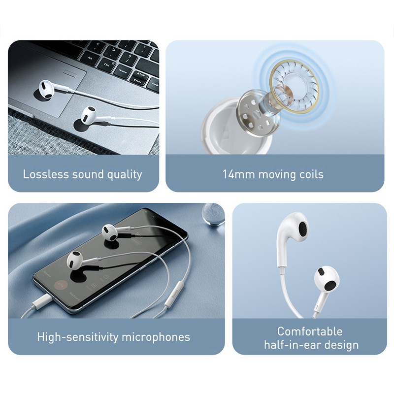 Baseus Type-C lateral in-ear Wired Earphone Suitable for Huawei Mate 40 Samsung S21 3.5mm Wired Earphone for Samsung Android