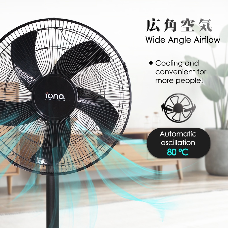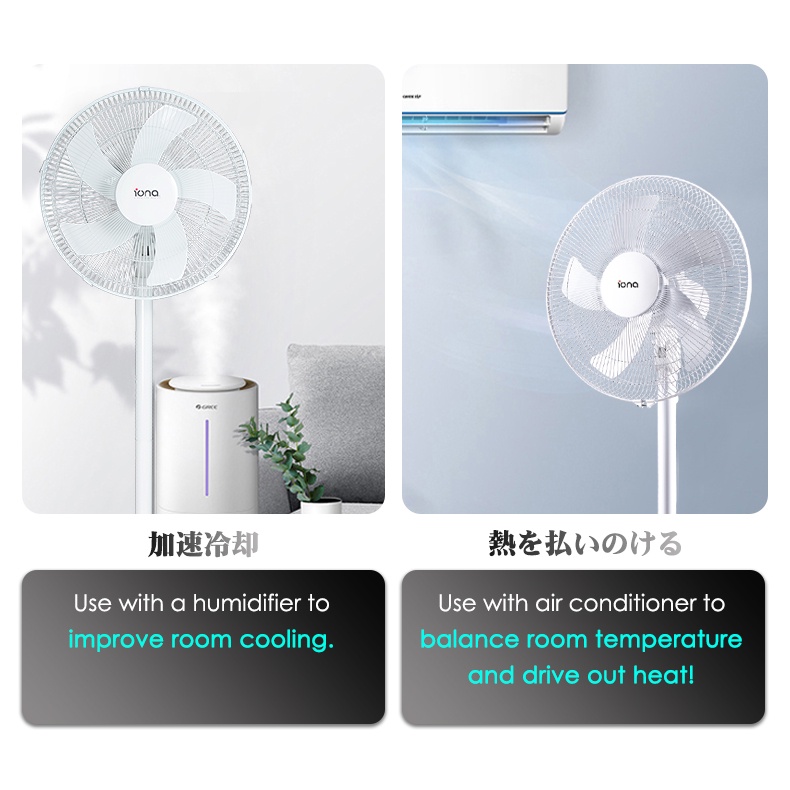 IONA 16" 5 Blade Black White Adjustable Stand Standing Fan | Electric Tatami Fan 家用风扇 風扇 - GLSF166