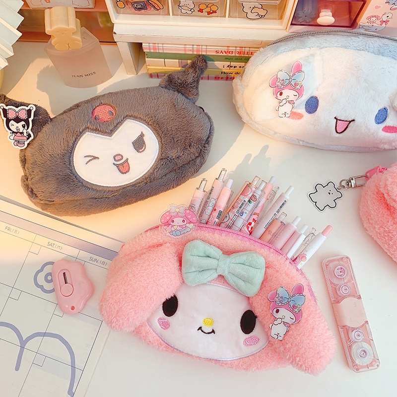 Kawaii Plush Pencil Bag Girls Cute Pencil Case Large Capacity Student Learning Back to School Supplies Storage Box Korean Stationerypencil case