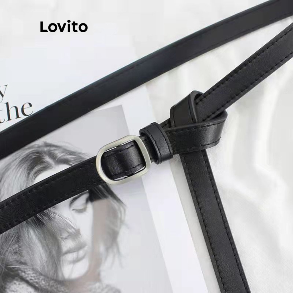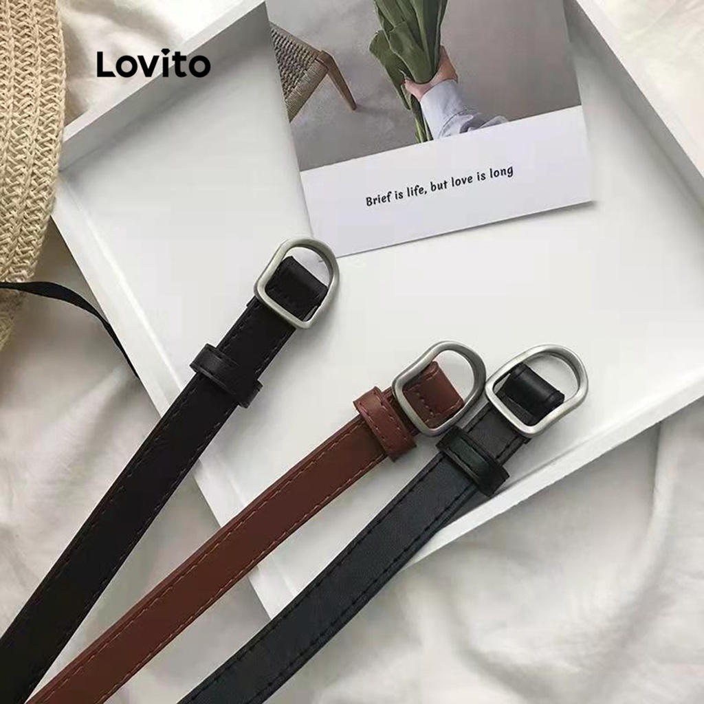 Lovito Casual Plain Basic Nonporous Women Belt L38ED003 (Mocha Brown/Black)