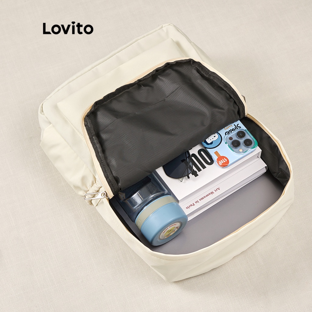 Lovito Preppy Plain Colorblock Double Shoulder Strap Multi-pocketed Backpacks L41BA05 (White/Pink/Blue/Black)
