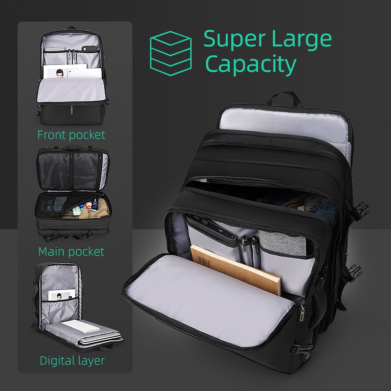 Mark Ryden Expandable Nylon Laptop Backpack for Men | Large Capacity Travel Bag | Fit 17.3 Inch Laptop | Made in China | Logo, Plain Pattern