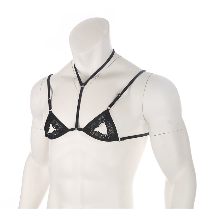 Mens Sexy Lace Transparent Underwear Ultra-Thin No Sponge Bra Top Adjustable No-wire Brasiere Lingerie