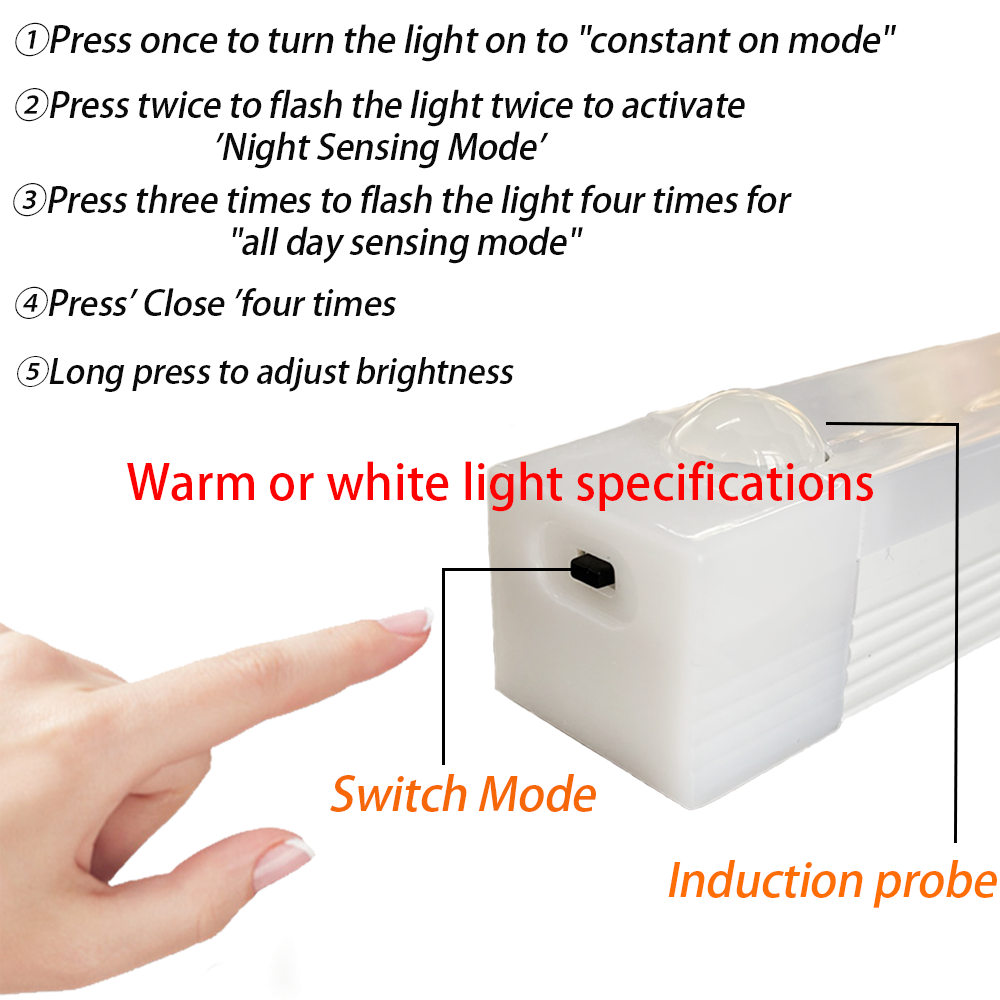 Motion Sensor LED Night Light TYPE-C Rechargeable Smart Wireless Brightness Adjustable Cabinet Wardrobe Bedroom Lightting 10/20/30/50cm