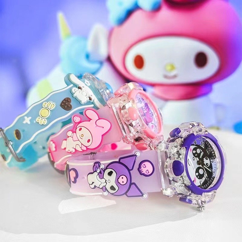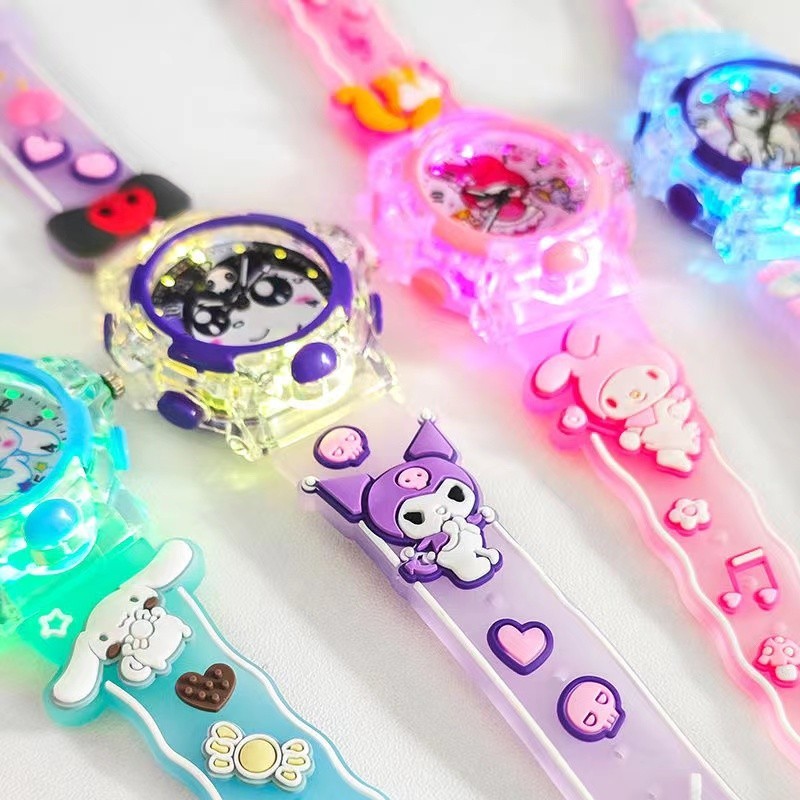 New Epoxy Sanrio Kuromi Cinnamoroll Melody Unicorn Watch for Student Kids Girls and Boys Watch Luminous Glow in The Dark Kids Gift Watch with LED Light