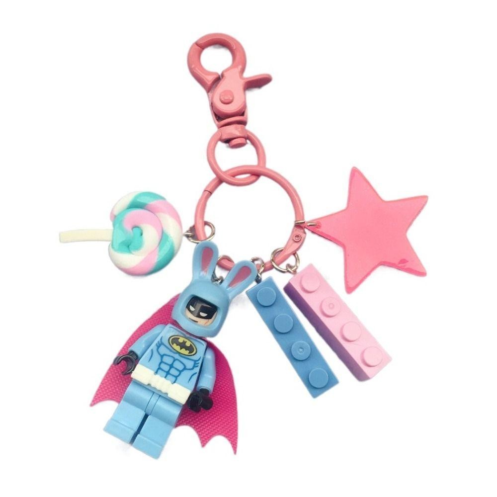 PEONYTWO Keychain, Small Figures Pink Key Ring, Creative Building Blocks Fairy Batman Heroes Key Lanyards