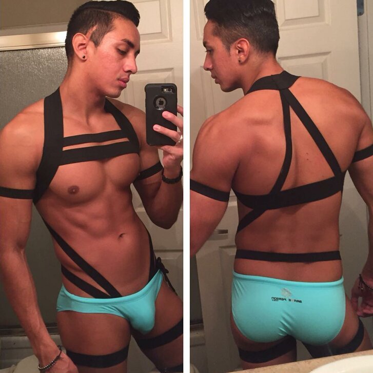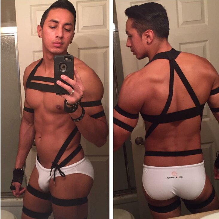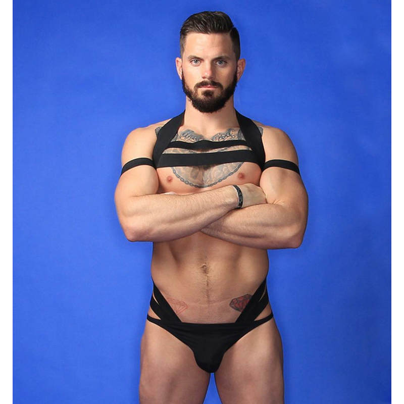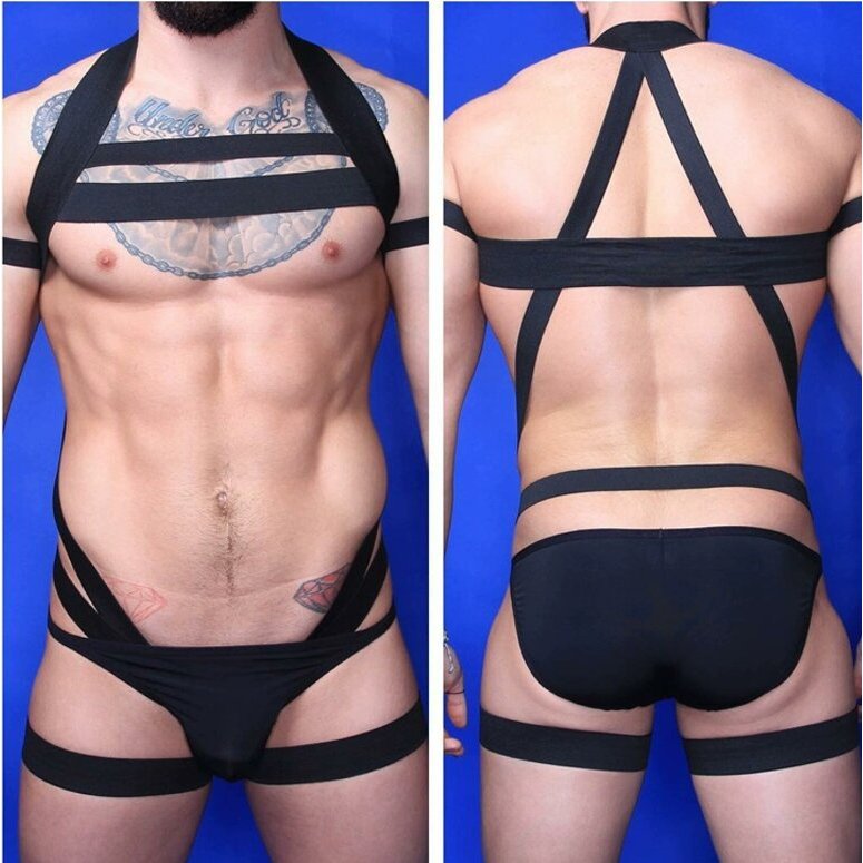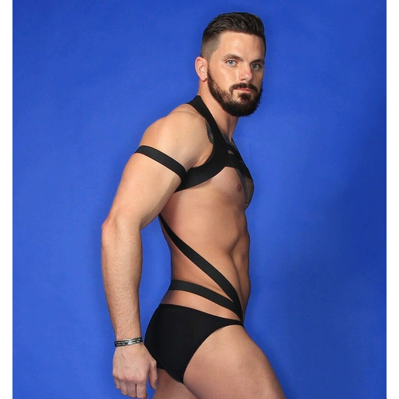 Pt484 Ready Stock European American Men Stretch Black Full Body Hollow Tight-Fitting Bondage Belt Muscle Male Sports Student Fitness Coach Stage Performance Showing Chest Muscle Body Sculpting Body Be
